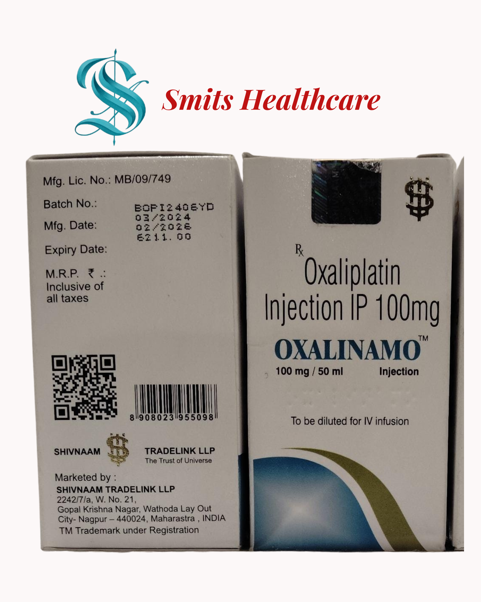 Oxalinamo contains Oxaliplatin, an intravenous platinum-based chemotherapeutic agent used primarily for the treatment of colorectal cancer. It is often administered in combination with other chemotherapy drugs, such as 5-fluorouracil (5-FU) and leucovorin (FOLFOX regimen), to enhance anticancer efficacy. Oxaliplatin works by damaging DNA in cancer cells, which inhibits their replication and induces cell death.